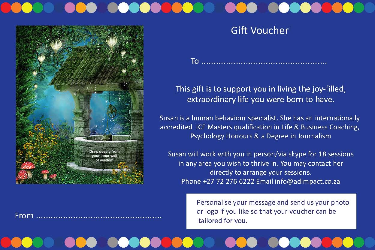 I am blessed with natural abilities, specialized training, experience and wisdom in this field. If you are still uncertain but serious about purchasing vouchers, I am happy to have a session with you, at no charge so that you can experience transformation in an area which is challenging you or which you wish to heal. In the unlikely event that the recipient of the voucher truly receives no value from his/her first session, we will refund you. This has never been necessary in all these years so we are confident this will not happen but we just wish to give you peace of mind that you have nothing to lose. The rewards of self-mastery over our inner and outer worlds, are beyond what money can buy. They are life-changing and enable people to live extraordinary lives filled with meaning, purpose and joy.